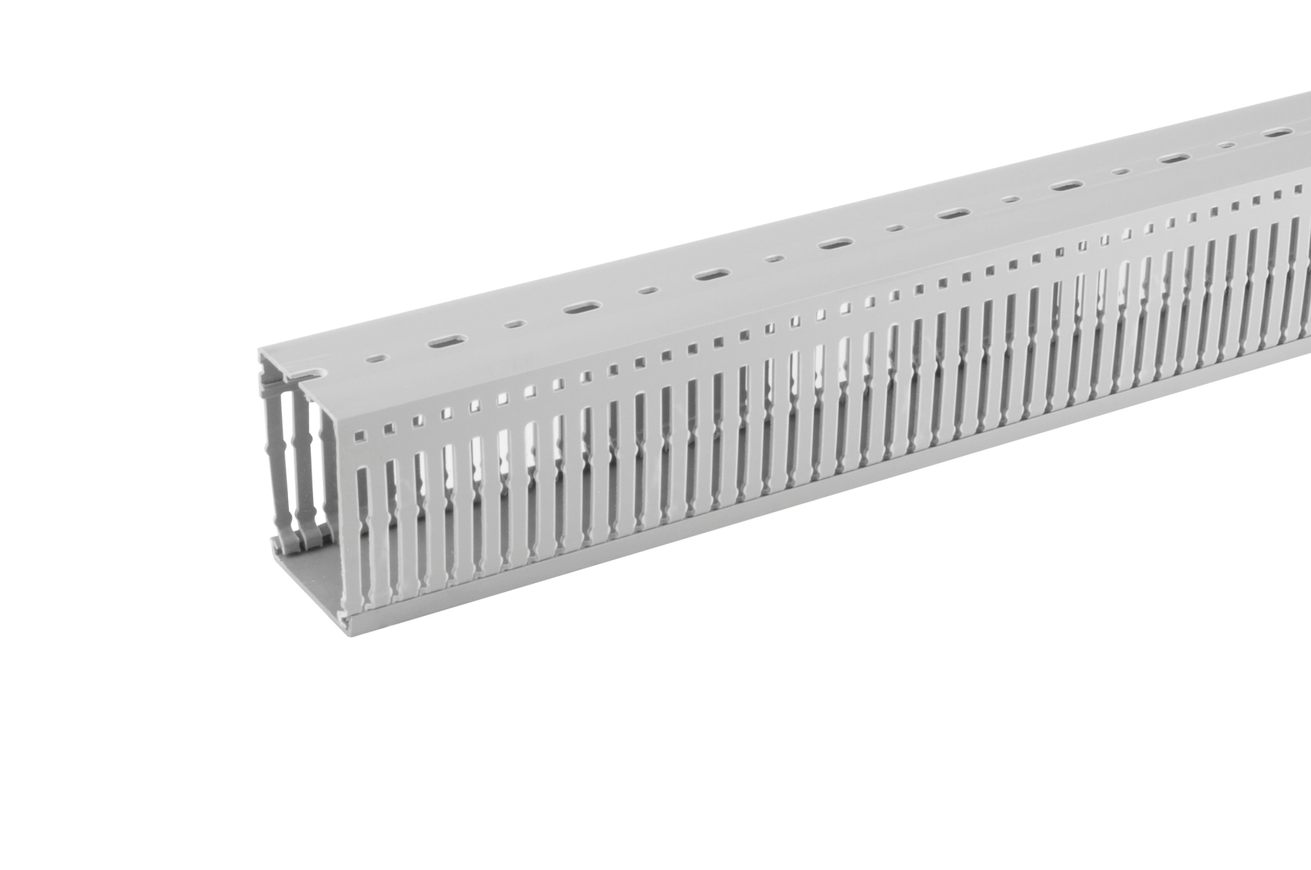 Kammkabelrinne 60x40 zur Führung von Elektroinstallationen in Verteilerschränken und Steuerschränken. Besteht aus einem Gehäuse, einem Schnappdeckel und flexiblen Rippen.