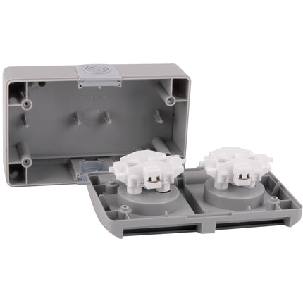 With an IP54 rating, the outlet is resistant to dust and water, making it excellent for outdoor use and areas with high humidity, such as garages, basements, terraces, and gardens.