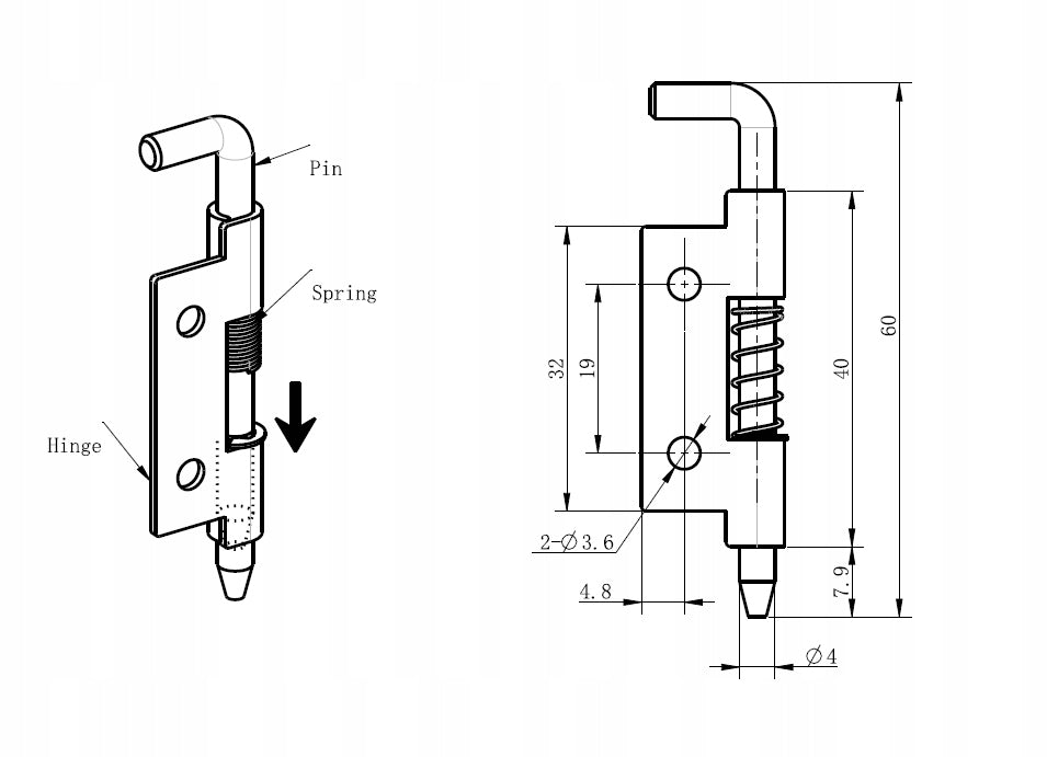 Right Hinge Pin 32 mm, Galvanized Steel 0Z-0054