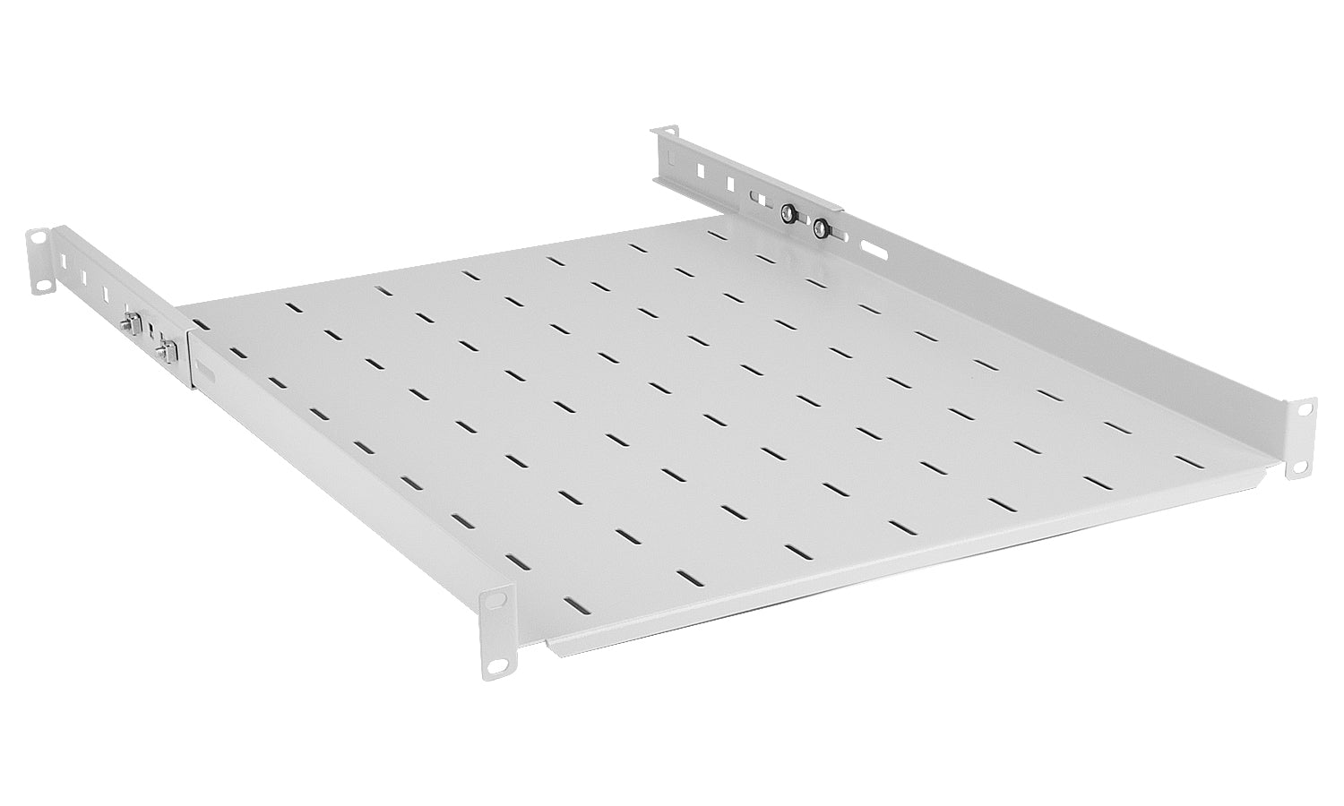 Wykonanie z solidnego materiału zapewnia jej wytrzymałość, a mocowania w czterech punktach do belek rackowych stabilność. Możliwość płynnej regulacji głębokości.