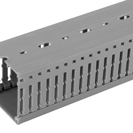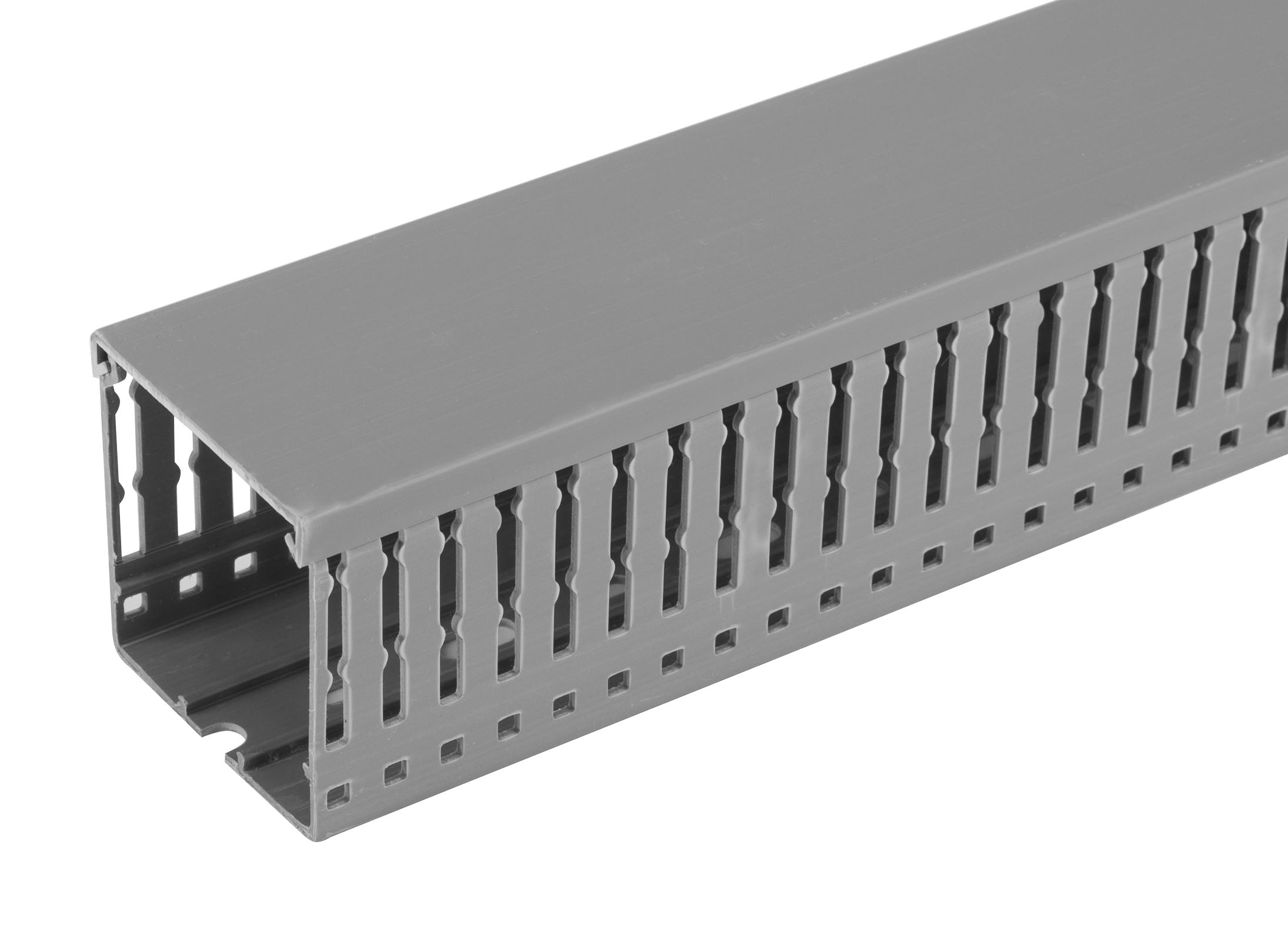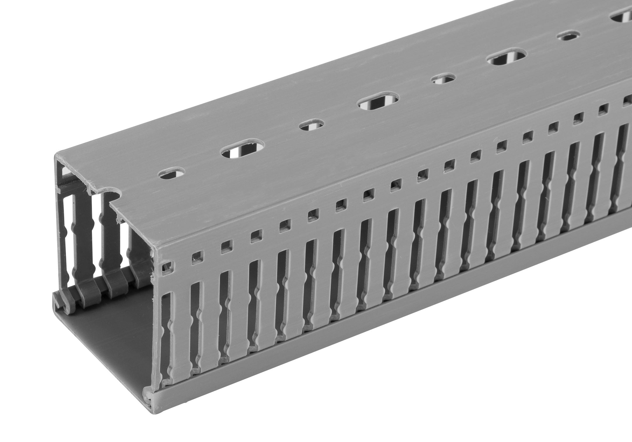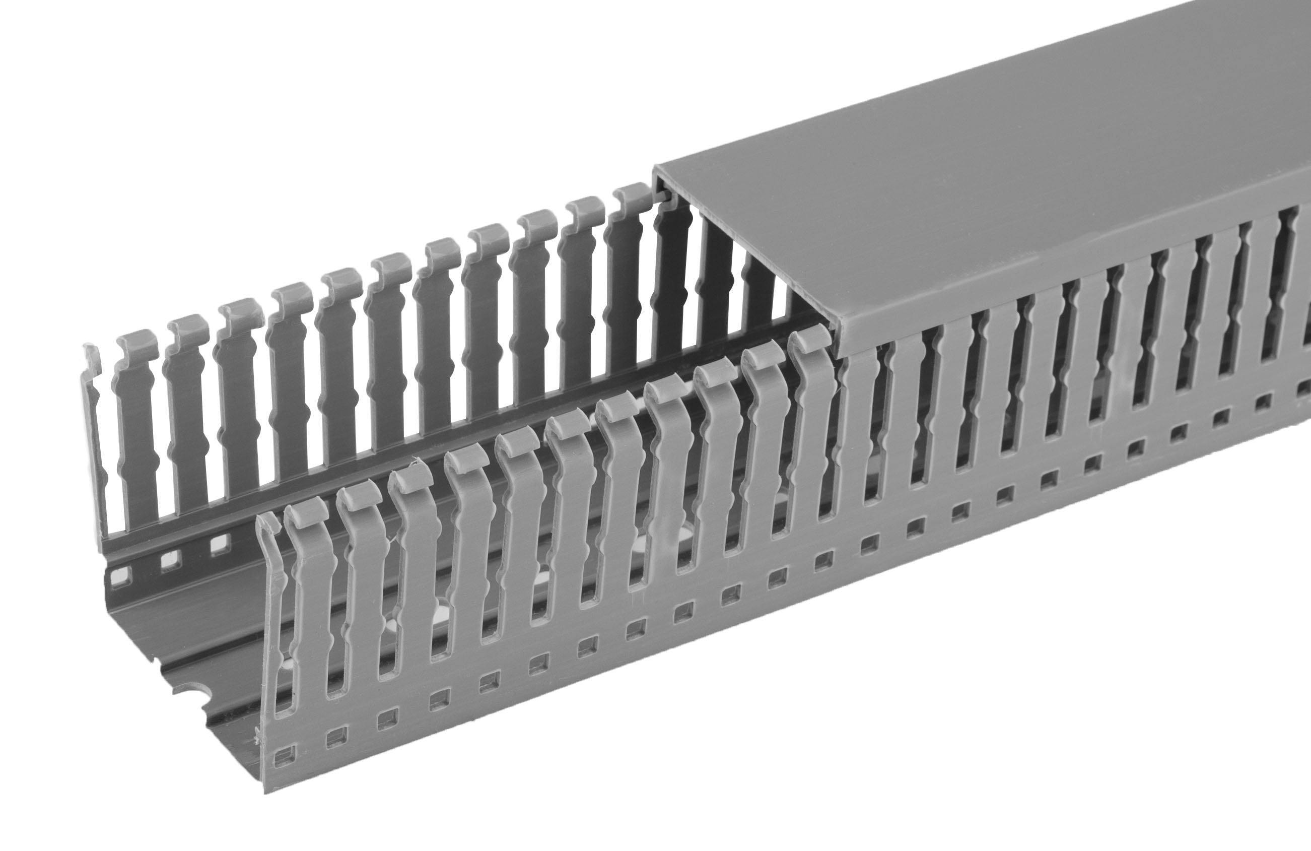 Koryto grzebieniowe 60x60 z przeznaczeniem do prowadzenia instalacji elektrycznych w szafach rozdzielczych i sterowniczych. Składa się z korpusu, pokrywy zatrzaskowej oraz elastycznych żeberek.